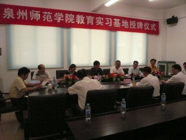 6月2 日下午,教育科学学院与泉州开发区实验学校共建教育实习与科研基地签约授牌仪式暨课题研究开题报告会在开发区实验学校隆重举行。参加签约授牌仪式和开题报告会的有共建单位双方的领导、泉州市教育局领导、泉州市教科所研究员以及课题组负责人和部分教师代表。