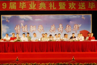 6月12日,我校2009届毕业典礼暨欢送毕业生晚会在孙中山广场举行。校领导洪辉煌、黄子杰、张舟、赖新民、王炳庆、林华东,机关各部门、二级学院负责人及我校2009届毕业生参加了毕业典礼暨欢送晚会。毕业典礼由副校长林华东主持。