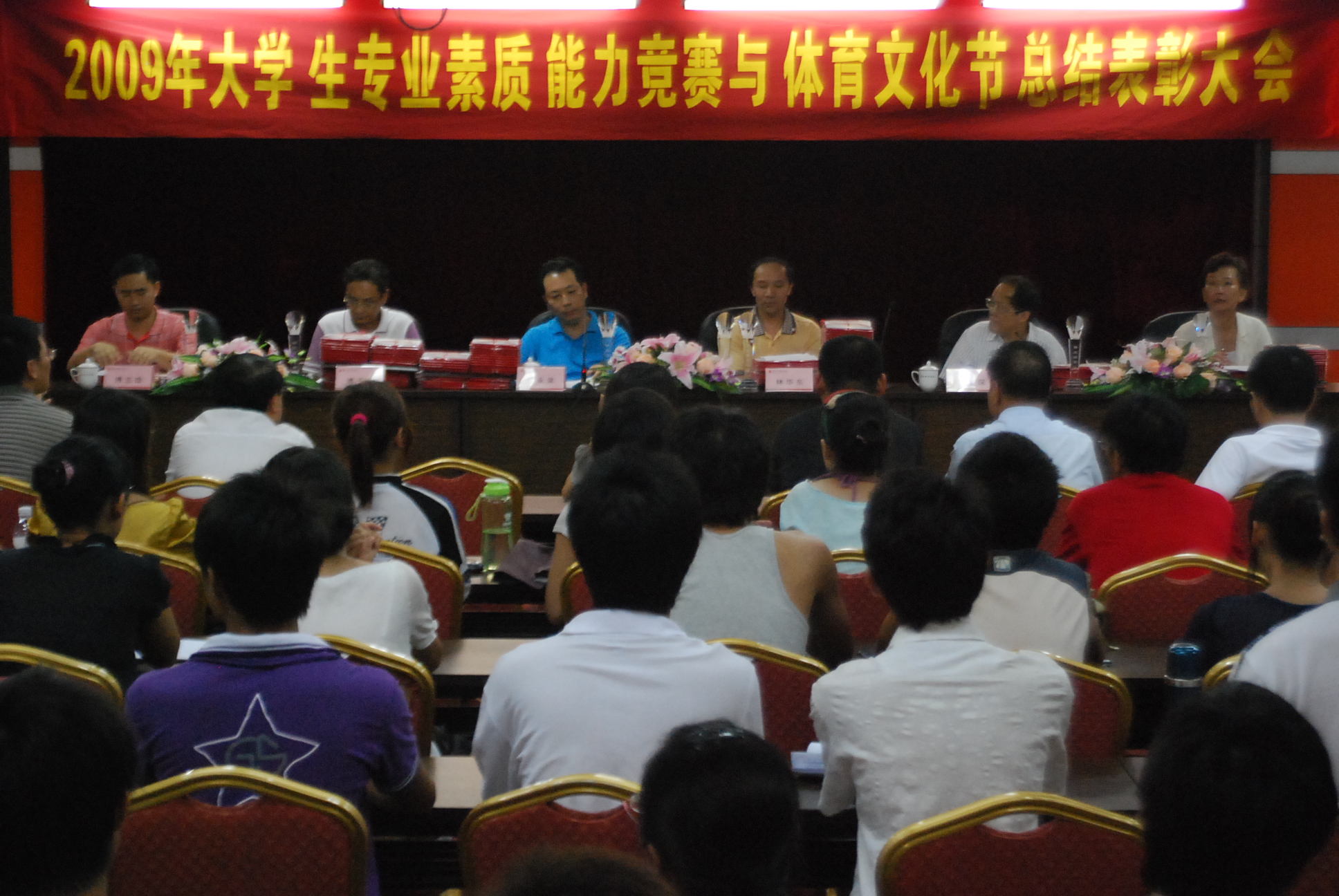 6月25日下午,校2009年大学生专业素质能力竞赛与体育文化节总结表彰大会在行政办公楼二楼大会议室举行。副校长林华东、相关部门负责人及第十八届大学生专业素质能力竞赛组委会成员、第二届体育文化节组委会和各二级学院师生代表出席了表彰大会。