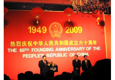 酒会首先由中国驻菲大使刘建超致欢迎词。刘大使向与会人士致以节日的问候和美好的祝愿。他说,中华人民共和国成立六十年来,伟大的祖国走过了不平凡的历程,中国共产党和中国人民以一往无前的进取精神和波澜壮阔的伟大实践,谱写了中国民族的自强不息,顽强奋进的壮丽史诗。当前中菲两国关系很好,中菲在各领域的合作不断加强,衷心感谢广大旅菲侨胞和各界人士长期以来为促进和加深中菲两国人民之间相互了解和友谊作出的不懈的努力和重要的贡献。