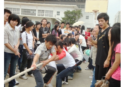 目前,从09级新生入校来,外国语学院一直举办多样的活动让新生积极参与,锻炼新生们的德智体美,为大家提供一个认识自我,展现自我的舞台。而趣味体育就是一个包揽德智体美的活动。趣味体育活动主要由班级拔河、运球接力、团体跳绳、足球障碍射门、蛙跳咬苹果等项目组成。