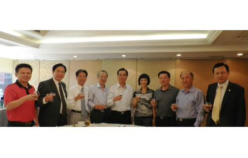 拜访校副董事长林树哲先生(左五)、校董事会副秘书长卢温胜先生(左三)、荣誉董事颜乾成先生(左二)等