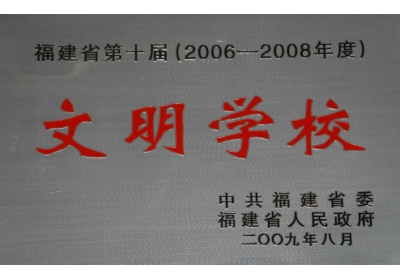 日前,从福建省委教育工委获悉,在中共福建省委、福建省人民政府组织召开的福建省2006-2008年度精神文明建设表彰大会上,我校被授予第十届(2006-2008年度)福建省“文明学校”荣誉称号。至此,我校已连续四届荣获此殊荣。