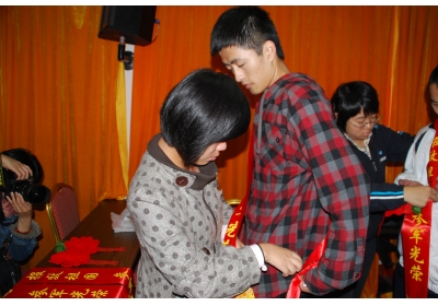 为入伍学生佩戴绶带