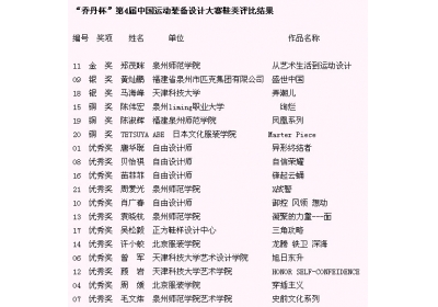 日前,乔丹(中国)有限公司携手中国服装设计师协会联合主办的“乔丹杯”第4届中国运动装备设计大赛在北京饭店落幕,我校艺术设计专业(鞋类造型方向)2006级学生参加由中国服装设计师协会主办的“第四届‘乔丹杯’中国运动装备鞋靴组设计大赛”获佳绩。郑茂眯同学的参赛作品《从艺术生活到运动设计》获金奖;陈淑辉同学的参赛作品《凤凰系列》获铜奖;周爱光、袁晓杭、毛文炜、乔艳清等4名学生的参赛作品获优秀奖。