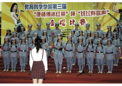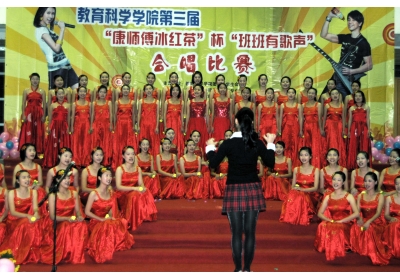 夜幕下的荣茂大厅灯光灿烂。一首首慷慨激昂的红歌渐次响起。此次比赛以爱党、爱国为主旋律,各班各展所长,《爱我中华》、《歌唱祖国》、《太行山上》等一首首歌曲脍炙人口、催人奋进,搭配多变的队形,将比赛推向一个又一个高潮。跳动的音符,整齐的着装,为师生们带来了一场场精彩绝伦的视听盛宴。经过激烈的角逐,学前教育专业07级和08级共同获得一等奖;07小学教育专业艺术方向等班级分获二三等奖;最佳组织奖由09特殊教育专业获得;来自07学前的陈玉燕同学获得“最佳指挥”称号。最后,该院新生合唱团以歌曲《在灿烂阳光下》及《瑶山夜歌》拉下了本次大赛的帷幕。(教育科学学院)