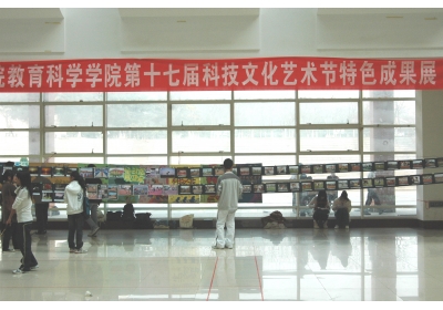本次展览主要展出该院团委、学生会的学宣部、团宣部、摄影团、心理协会、电脑DIY协会、青年志愿者协会等各部门在第七届科技文化艺术节上的工作成果。 社团展区内用上百只千纸鹤围成的青年志愿者协会会徽格外的引人注目,在它附近的留言板上,参观展览的同学们留下了一句句温馨感人的话语;院标设计以及摄影大赛等活动的作品展示了教科第十七届科技文化艺术节活动的风采;专业特色展区内各专业结合了专业特色展出了实习见习的照片、手工品、教学器材等特色展品。展览内容还有美术作品、电脑作品、植物标本、各项活动现场实况照片等。 该学院团委负责人表示,此次成果展突出了教育科学学院特殊教育、应用心理学等专业的特色,形式活泼,内容新颖,众多精品、特色品的展出拓宽了同学的视野,收到了良好的效果。(教育科学学院)