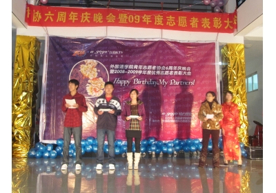 庆典晚会在独具特色的的太鼓表演中拉开了序幕,歌曲《爱情里的眼泪》演绎着无限深情,配乐诗朗诵《志愿者——生命里的守望天使》诠释出青协的无私奉献,幽默搞笑的小品《新版梁山伯与祝英台》赢得了满堂喝彩……现场成了歌声与笑声的海洋。庆典仪式结束后,该院还举行了项目丰富多样的游园活动,“踩气球”、“蒙眼击鼓”、“小球水中赛跑”等游戏。