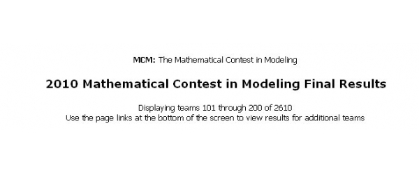 日前,2010年第26届国际大学生数学建模竞赛(MCM/ICM)成绩揭晓,我校数学与计算机科学学院07级数学与应用数学专业的黄伟菁、杨玲玲、陈世军三名学生组成的参赛队,在杨昔阳、