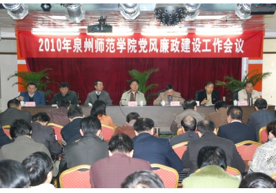 洪辉煌传达了中纪委十七届五次全会、省纪委八届八次全会以及全省教育纪检监察工作视频会议精神,对我校2010年党风廉政建设和和反腐败工作提出了要求。他强调,我校今年党风廉政建设和反腐败斗争,要围绕“一条主线”,把握“两个重点”,搞好“三位一体”工作,扎实做好“四项工作任务”,即以完善学校惩治和预防腐败体系,落实党风廉政建设责任制为工作主线;以加强对领导班子和领导干部以及对重点领域、重点部位和关键环节的管理与监督为工作重点;认真抓好教育、制度、监督“三位一体”的预防腐败工作;全面落实《泉州师范学院贯彻落实<建立健全惩治和预防腐败体系2008—2012年工作规划>实施办法》和今年年度工作方案所确定的任务,深入开展“班子和作风建设年”活动,着力解决损害群众利益的问题和群众反映强烈的突出问题,进一步加强学校纪检监察队伍建设。