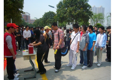 在泉州师院校园主干道旁,泉州师院校团委、青年志愿者协会组织开展了以“情系玉树,爱心相连”为主题的献爱心活动。活动内容包括包括现场募捐、灾区图片展示、海报宣传、爱心祝福、横幅签名等活动。活动现场,一幅幅关于玉树灾区的图片,牵动着同学们的心。广大同学纷纷在“绵薄之力,积沙成塔,携手同心,抗震救灾”的横幅上签名,在心愿贴上写下自己的祝福,并往募捐箱投入自己的一点心意,希望通过自己的绵薄之力,为玉树灾区献上一片爱心。广大师生积极踊跃地参加到此次募捐活动中,据统计,截止目前,我校师生已捐助款项25566.3元。