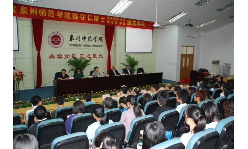 2010年5月14日上午,2010年度泉州师范学院陈守仁博士奖学金、助学金、南音奖学金颁发典礼在孙中山礼堂三楼报告厅举行。市委副书记黄少萍、学校副校长高云程、陈守仁博士及其家等出席了颁发典礼。