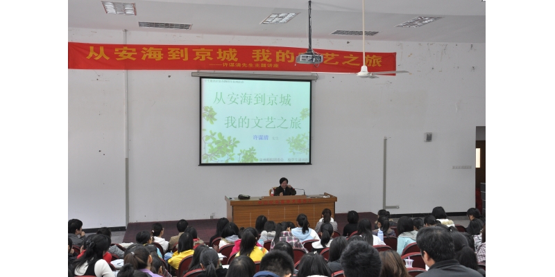 12月19日上午,著名作家许谋清先生在我校中山第一报告厅作题为《从安海到京城——我的文艺之旅》的讲座。
