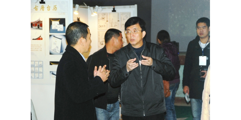 福建省省长助理郑松岩(左一)等领导参观我校创意作品展