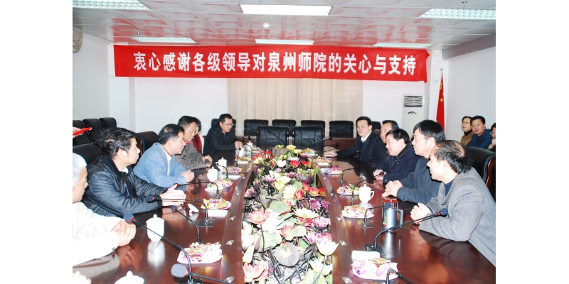今日下午,泉州市丰泽区区长许文贵率团莅临我校,向我校师生祝贺新春。校领导黄子杰、张舟、王炳庆、林华东、高云程在行政楼七楼会议室会见一行。