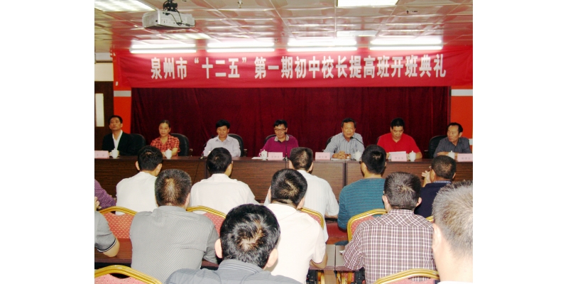 昨天上午,我校在行政楼二楼报告厅举行了泉州市“十二五”期间第1期初中校长提高班开班典礼。王炳庆副校长、泉州市教育局人事科姚金殿科长出席了开班典礼。继续教育学院院长郑文谦主持典礼。
