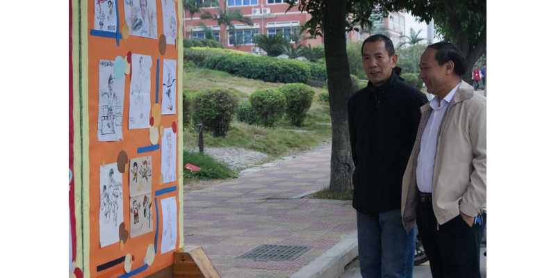 沿渠大道边林立的宣传栏,将学生作品分为“漫漫征程” “激扬人生” “谁主沉浮”三个阶段来呈现,同时设立留言专栏。此次画展共收到作品四百余幅,展出优秀作品一百余幅。作品内容包括运动员赛前艰苦训练、赛中奋力拼搏、赛后总结收获以及后勤自愿者服务等画面,以独特的方式表达对参加本次校运会运动员的呐喊助威以及对志愿者精神表示肯定。而留言专栏更体现了广大师生对此次展览的鼓励、支持和肯定。