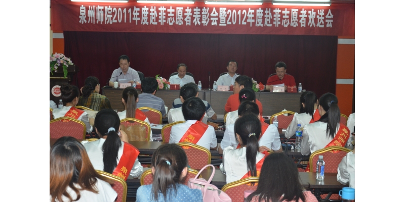 5月25日上午,我校举行2011年度赴菲志愿者表彰会暨2012年度赴菲志愿者欢送会。校党委副书记张舟、副校长林华东、副校长高云程,志愿者工作领导小组全体成员,2011年和2012年赴菲志愿者及师生代表参加了会议。外事办主任耿永泉主持会议。