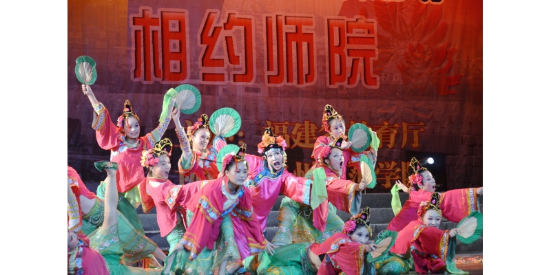 联欢活动中,我校的学生们表演了舞蹈《姑嫂看戏》、南音《唐宋遗韵泉州南音》、提线木偶表演《媒婆》等极具闽南特色的节目,以及古诗串烧、书法表演等展示中华文化的精彩节目,浓浓的中国风让台湾大学生深切感受到中华文化的博大精深。两岸大学生还进行了听歌猜曲等互动节目,把联欢活动推向高潮。