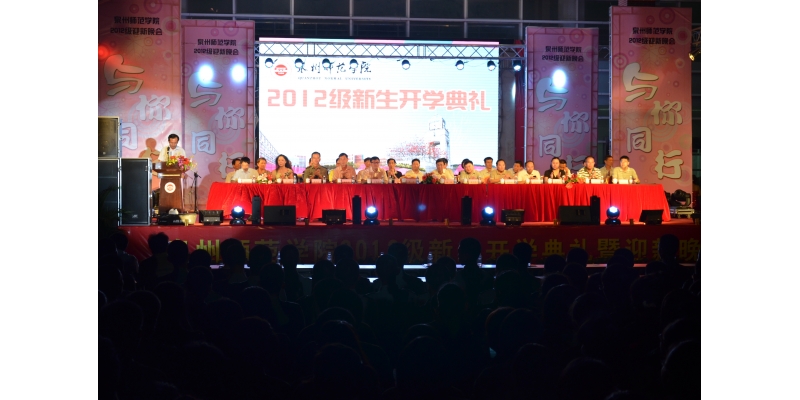 9月26日晚上,学校在中山广场举行2012级新生开学典礼暨迎新晚会。校领导赵捷、黄子杰、张舟、陈东水、王炳庆、林华东,黎明职业大学校长林松柏,泉州纺织服装职业学院副董事长、法人代表林雅琍,承训部队官兵,机关各部门负责人,各二级学院党政负责人,教师代表,2012级研究生、本专科新生参加了典礼。开学典礼由校党委副书记张舟主持。
