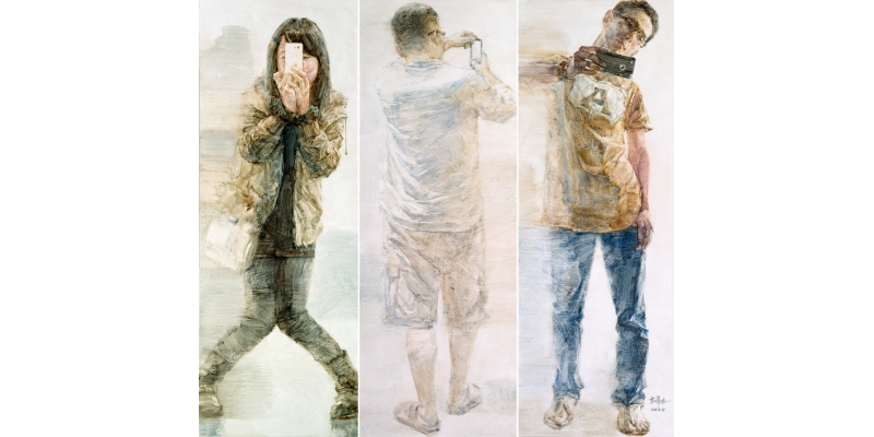 (黄曦农水彩画《拍照手机》)