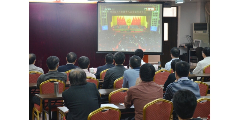 11月8日上午9时,中国共产党第十八次全国代表大会在北京人民大会堂隆重开幕。胡锦涛总书记代表十七届中央委员会作了题为《坚定不移沿着中国特色社会主义道路前进为全面建成小康社会而奋斗》的报告。我校广大干部师生密切关注党的十八大,纷纷通过电视、网络等形式踊跃收看开幕式盛况。
