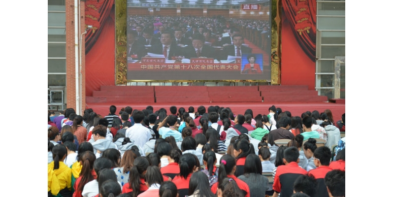 为了让师生第一时间了解十八大开幕盛况,学校分别在行政楼二楼会议室、中山广场、食堂开辟了会场,组织师生进行了集中观看开幕式。不少师生还通过手机、网络、广播等方式收听收看开幕式实况