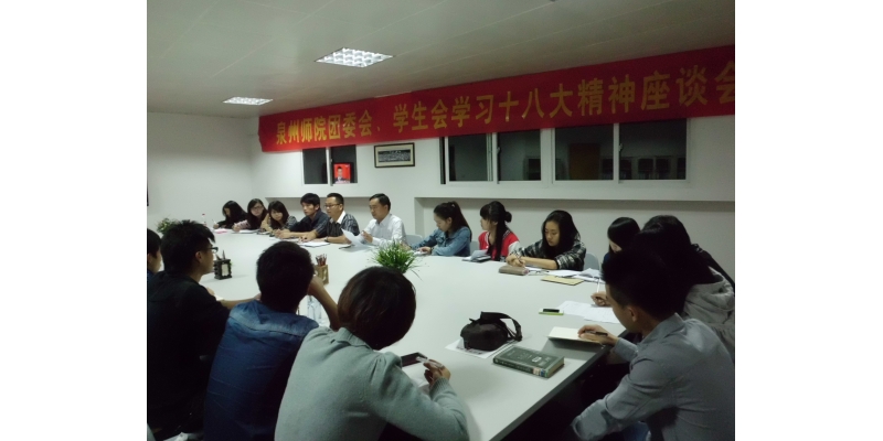 11月18日晚,校团委会、学生会在学生活动中心学生会办公室召开学习党的十八大精神座谈会。校团委书记傅志雄老师,校、院两级团学组织学生干部代表三十多人参加了座谈会。校团委副书记刘显新老师主持会议。