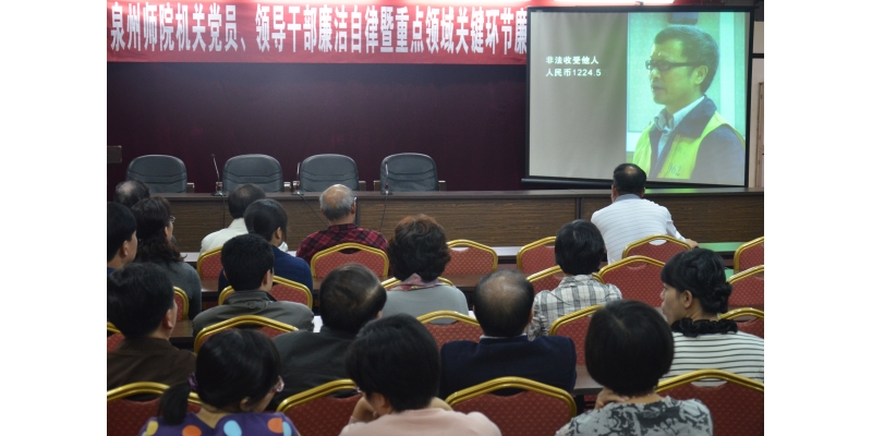 ,组织校部机关全体党员,涉及权、钱、财、物部门的工作人员在行政办公楼二楼大会议室集中收看了警示教育片——《蜕变与悔悟》。