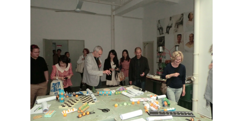 英国艺术家们随后参观了美术与设计学院的展厅、画室、工作室与教室等,并与学生进行了互动交流,在该院的环境艺术设计工作室和产品造型工作室,英国专家们还听取了美术与设计学院几位专业教师关于相关艺术创作项目的思路及构想,他们对师生开阔新颖的艺术创作思维、实践能力、教学水平十分赞赏。他们希望美术与设计学院今后加强与“艺术及离岛基金会”的交流合作,也欢迎师生有机会要到根西岛进行艺术创作。