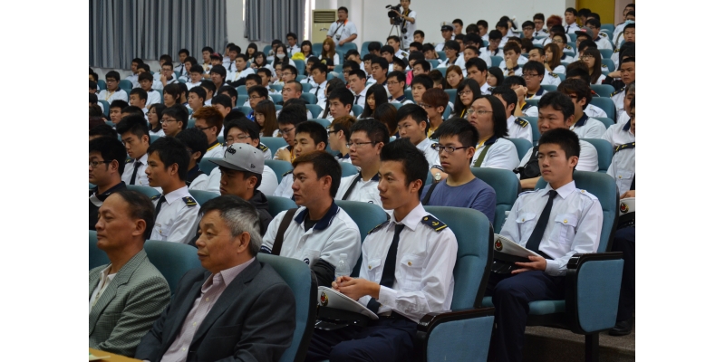 欢迎仪式之后,台北海洋技术学院老师彭铭渊、泉州海事局副局长吴蔚分别为两校师生作《两岸航运政策与法令探讨》、《中国航运安全与环保概况》的讲座。讲座后,两岸师生积极交流,频频互动,气氛热烈。