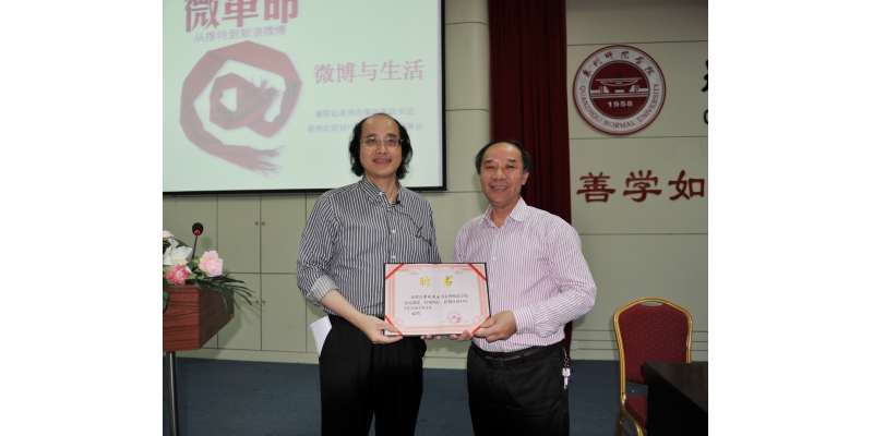报告会前,林华东副校长为黄斌颁发了泉州师范学院客座教授聘书。