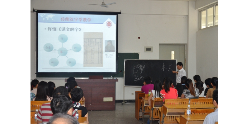 文传学院以动静相结合的方式,通过影像“文以化人·传以筑梦”宣传片和展板进行展示质量工程建设成果,闽南方言与闽南文化研究方向、闽台戏曲文学研究方向以及台港澳暨海外华文文学研究方向等方面的研究成果。杨秋生副院长以多媒体辅助教学,多学科、多角度、多视野地讲授“汉字学”,令人耳目一新。