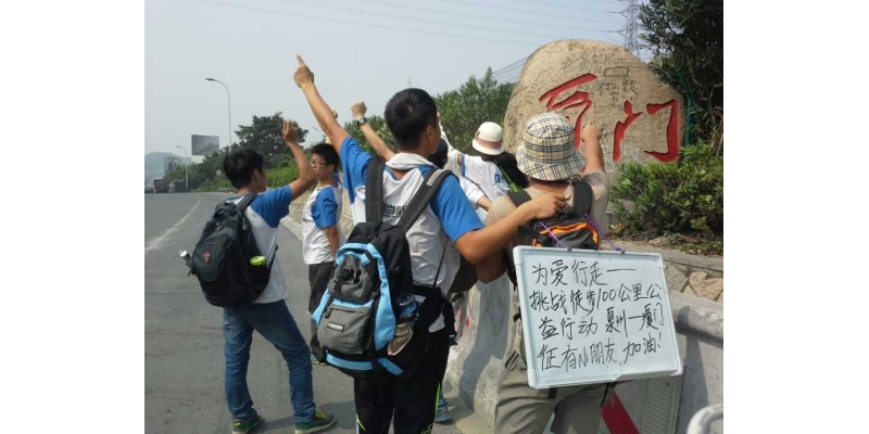 “这是一段赢回生命的100公里”。今年国庆,为了拯救一个身患白血病小朋友黄征有的生命,我校体育学院2012级体育特殊教育专业苏培辉同学在微博上召集了6个同城志愿者,组成一个名为“征有的小伙伴”的公益行动小团队,从泉州徒步去厦门南普陀为小征有祈福募捐。
