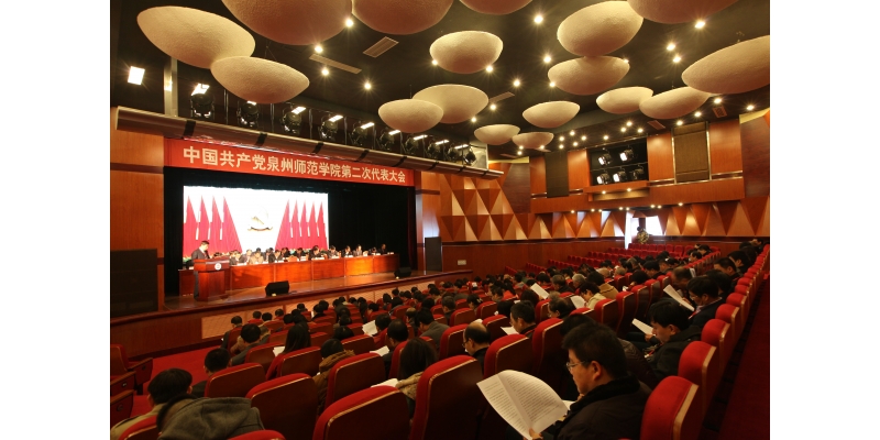 1月16日上午,中国共产党泉州师范学院第二次代表大会开幕式在学校音乐厅隆重举行。省委教育工委副书记杨江帆,市委常委、市委秘书长、统战部部长翁祖根,省委组织部组织处副处长林俊金,省委教育工委组织部部长詹松青、副处级干部陈洪尧,市委教育工委常务副书记陈少华,学校老领导洪辉煌应邀出席大会。校领导游小波、李清彪、张舟、高云程、陈东水、王炳庆、林华东、王晓东等156名党代表参加了大会。大会第一次全体会议由校党委书记游小波和常务副校长李清彪先后主持。