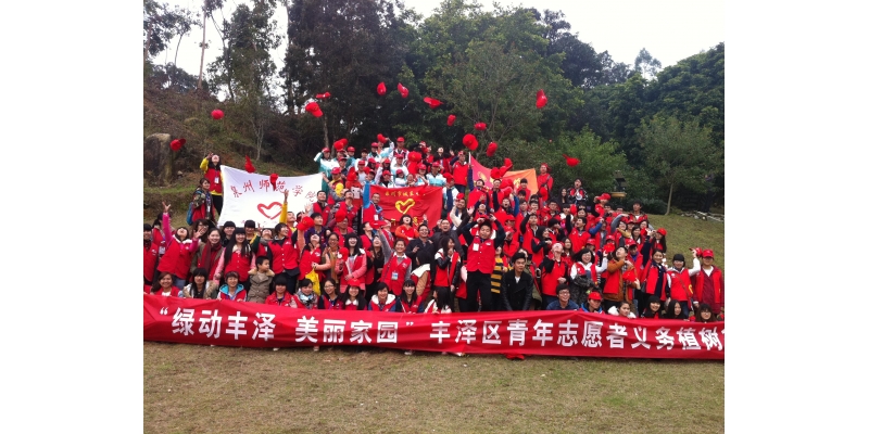 上午,我校团委和青年志愿者协会组织50多名志愿者参加由丰泽区组织的义务植树活动。