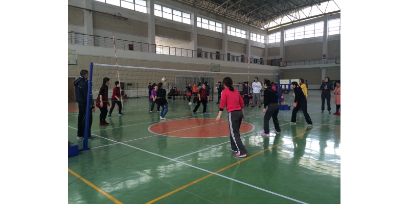 ,学校举行庆“三八”女教职工气排球赛。经过紧张激烈的比赛外语学院获第一名;校部机关第二名;资环学院第三名;数计学院第四名;图书馆第五名;物信学院第六名。