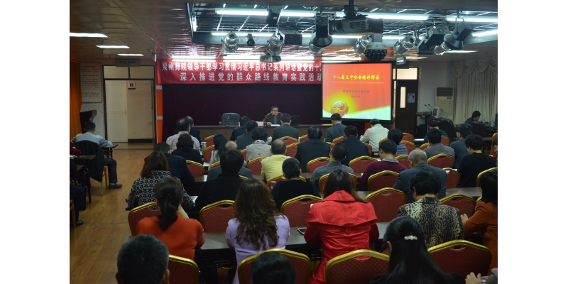3月18日下午,学校领导干部学习贯彻习近平总书记系列讲话暨党的十八届三中全会精神深入推进党的群众路线教育实践活动培训班在行政楼第三会议室举行第二场专题辅导报告会,政治与社会发展学院副院长刘玉生教授作题为《十八届三中全会精神解读》的报告。