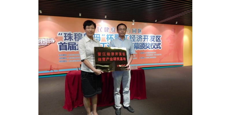 仪式上,体育学院院长许月云与晋江经济开发区管委会主任陈高攀分别代表体育学院和福建晋江经济开发区管委会共同签订了《战略合作协议》,并互相授牌。
