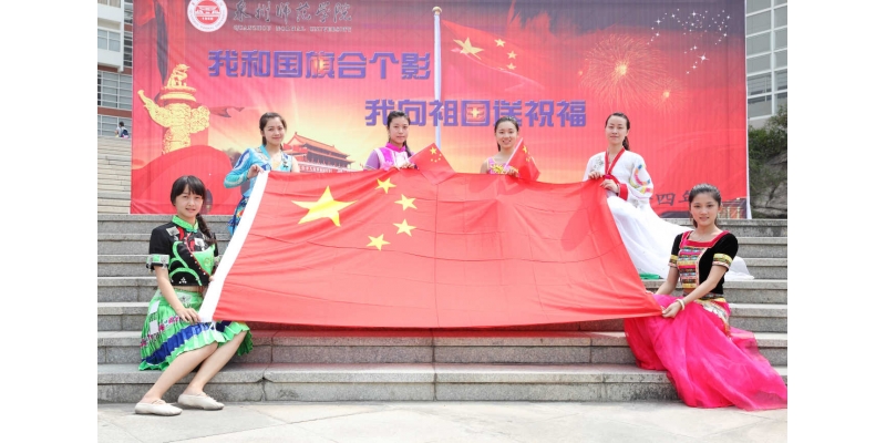 9月30日,校团委在中山广场、学生活动中心、校园主干道等人员集中处,设立国旗合影点、祝福留言处,发起“四面八方送祝福”活动,吸引了来自全国26个省份和地区的28个民族学子的参与,他们自发在为祖国祝福的横幅上签名并留言。