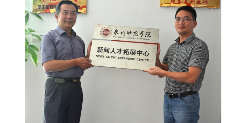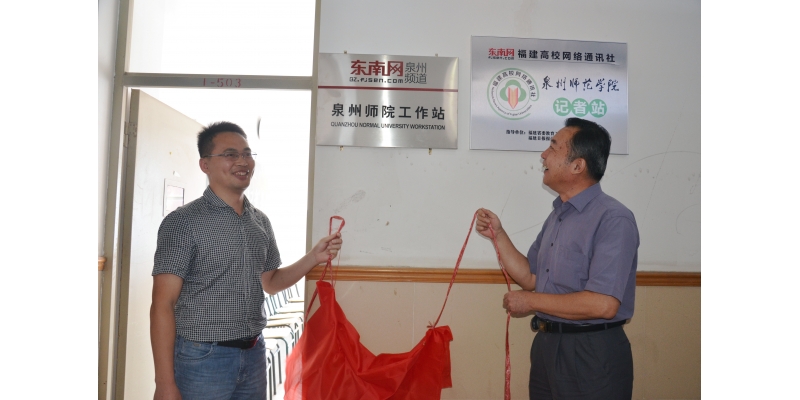 张舟、王祥楠分别代表两家单位为“泉州师范学院新闻人才拓展中心”和“东南网泉州站泉州师院工作站”揭牌。