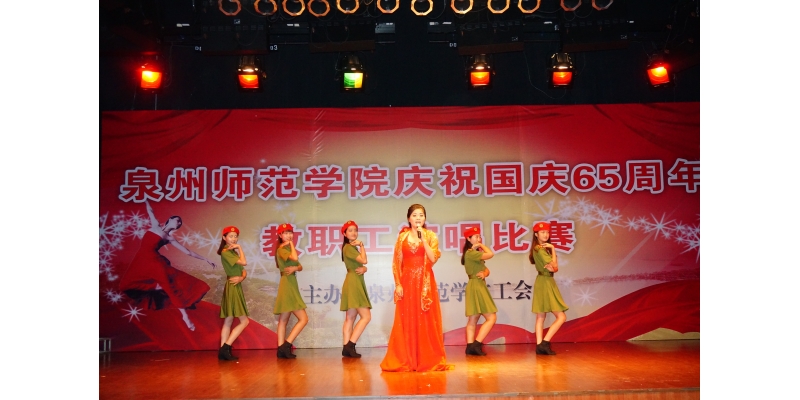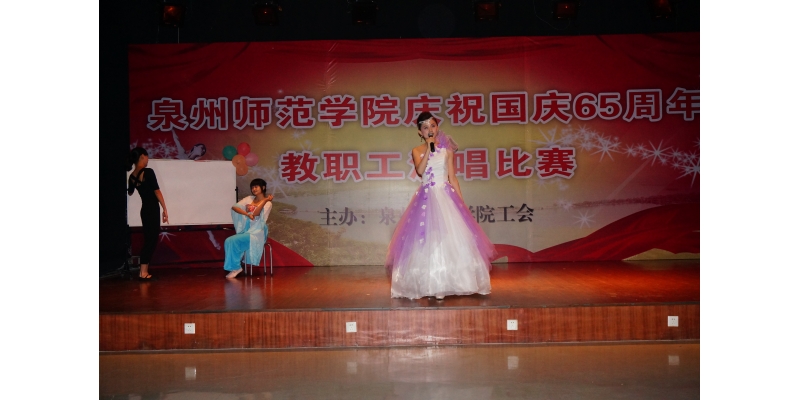 周年,在呈辉演播厅举办了以歌唱祖国为主题的教职工演唱比赛。来自各二级学院和校部机关的参赛选手通过歌声表达了师院人爱我中华强我中华的共同心声,也充分展示每个选手的演唱水平。经过激烈的角逐,体育学院的陈美婧、文学与传播学院的黄丹琳两位老师分别以《长大后我就成了你》和《祖国万岁》荣获本次比赛的一等奖。(工会)