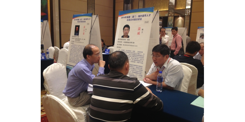“2014年中国·福建海外人才创业周”活动是由中共福建省委组织部、福建省人力资源和社会保障厅、福州市人民政府、厦门市人民政府、中国海峡人才市场共同举办,邀请了100名层次较高、项目较好、对接意向较明确的海外留学人才与高校、科研机构、企业进行了人才和项目的对接洽谈。