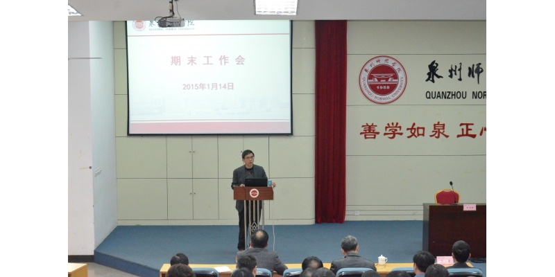 1月14日下午,学校在中山纪念堂学术报告厅召开期末工作会,总结回顾2014年学校工作,部署期末及寒期工作。校领导游小波、李清彪、高云程、林华东,校长助理、组织部部长陈亚兵,教授,副处以上干部,二级学院专业主任,二级学院办公室、教务科、学生科、团委负责人参加会议。会议由校党委书记游小波主持。