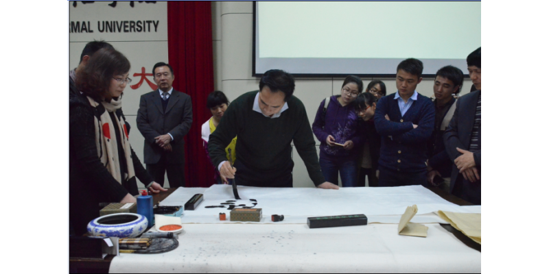 张舟做了概括总结,对曾祥辉教授的精彩讲授给予高度赞扬并表示衷心感谢。讲座结束后,曾祥辉教授现场挥毫泼墨,并现场点评了我校书法专业学生的作品。师生们热情围观,虚心向曾教授请教,久久未散。
