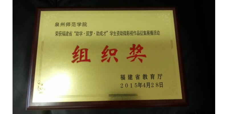 4月28日,福建省教育厅主办,福建省学生资助管理中心、福建教育电视台共同承办的“助学·筑梦·助成长”福建省学生资助微影视作品征集展播活动颁奖典礼在福建师范大学现代教育技术中心1号演播厅举行。我校荣获组织奖,物理与信息工程学院黄浩拍摄的作品《我……》和工商信息学院马聪拍摄的作品《转角遇到爱》分别获得微电影类二等奖和三等奖,美术与设计学院林嘉坡拍摄的《圆梦者》获得公益广告类三等奖。化学与生命科学学院林红棉和物理与信息工程学院黄婷婷分别获得最佳女演员奖和最佳女配角奖。