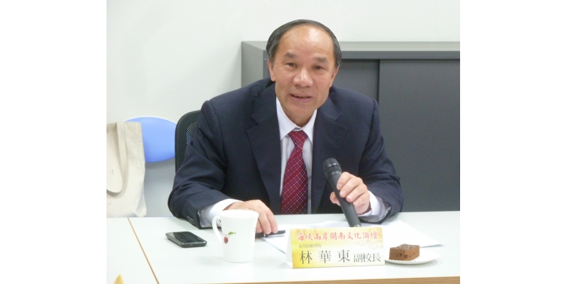 成功大学专门为此举办“海峡两岸闽南文化论坛”,全国台联会长汪毅夫教授特意改变在台行程出席论坛。论坛由成大人社中心主任戴强教授和副主任陈益源教授主持。林华东在论坛上做了《我对闽南文化的认识》的主题发言。他首先介绍了泉州师范学院与中国社会科学院、台盟中央合作成立闽南文化研究基地简况;然后就闽南文化的认同感与世界性、两岸海丝文化的古今关联性、两岸中华文化的共性与差异、两岸加强交往的障碍与困惑等四个议题与在座嘉宾进行广泛而深入的研讨。台南大学人文与社会学院院长林登顺、台南市文化资产保护协会理事詹伯望对林华东的主旨报告做了专题回应发言。马来西亚大学中国研究所高级讲师林德顺、越南庆和省遗迹保存中心研究员杜文快,以及我校黄科安教授、苏黎明教授、吴力群研究馆员、陈彬强馆员等围绕林华东提出的四大议题在会上展开热烈讨论。汪毅夫教授做最后的总结发言。会前,成功大学黄正弘副校长与林华东就闽南文化的传承做了专门交流。