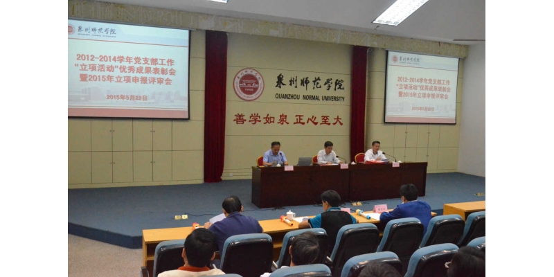5月22日上午,2012-2014学年学校党支部工作“立项活动”优秀成果表彰暨2015年立项申报评审会在中山礼堂第二学术报告厅举行。校党委书记游小波、副书记高云程,华侨大学党委组织部副部长武玉洁、学生处副处长黄建烽、体育学院副书记赖志淮,院长助理、组织部长陈亚兵以及二级党委(党总支)负责人、党支部书记参加了会议。会议由陈亚兵部长主持。