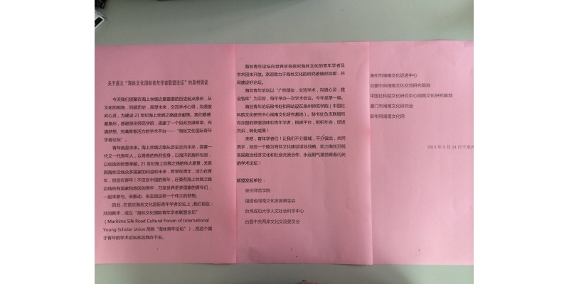 此次会议共收到学术论文72篇,主办方将遴选部分论文编辑成论文集,以《海丝文化国际青年学者论坛论文集》名义公开出版。