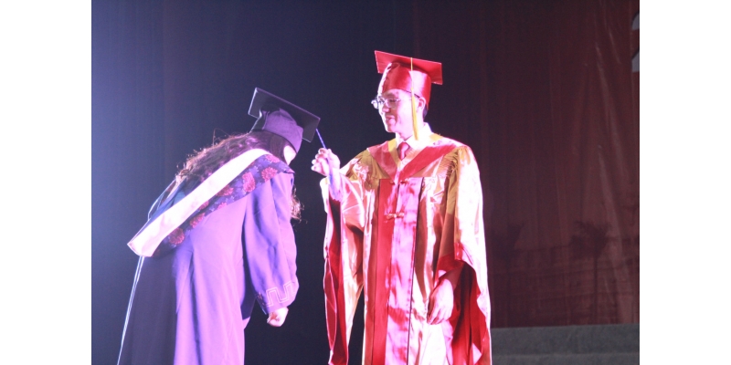 李清彪校长为本科毕业生扶正流苏